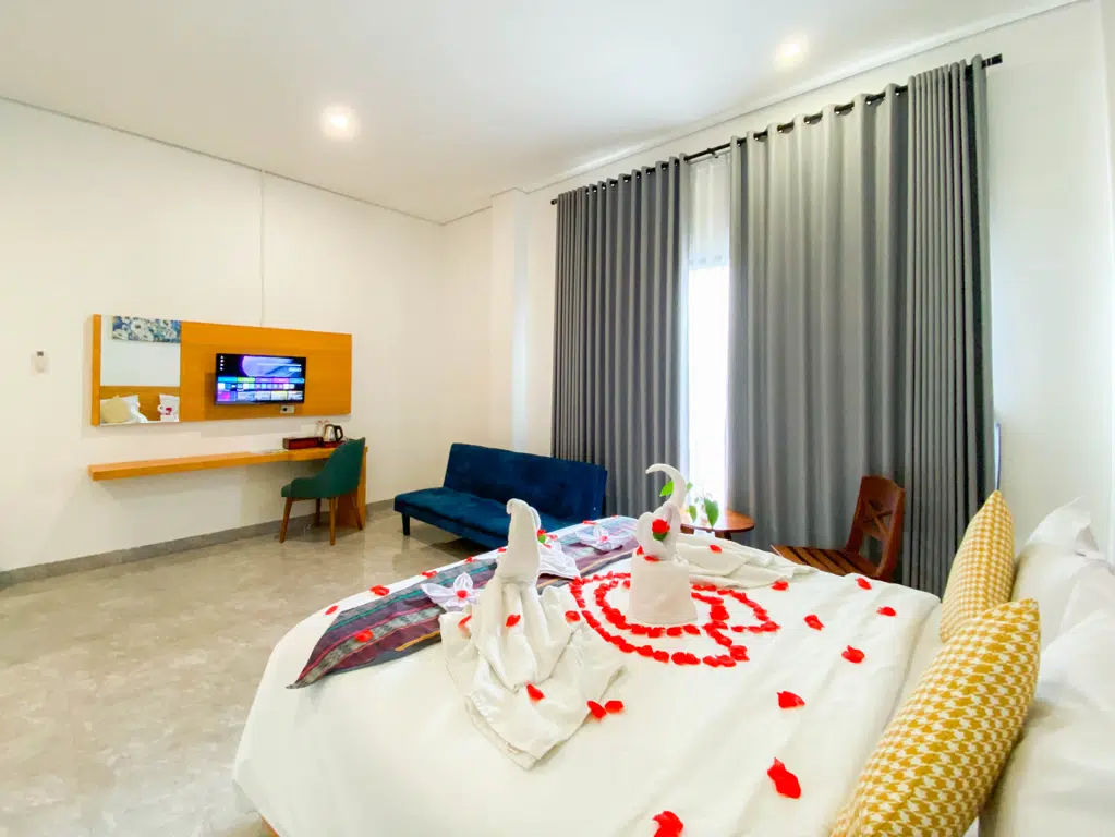 Nikmati pengalaman menginap yang tak terlupakan dengan dekorasi kamar pengantin yang romantis dan penuh kehangatan.